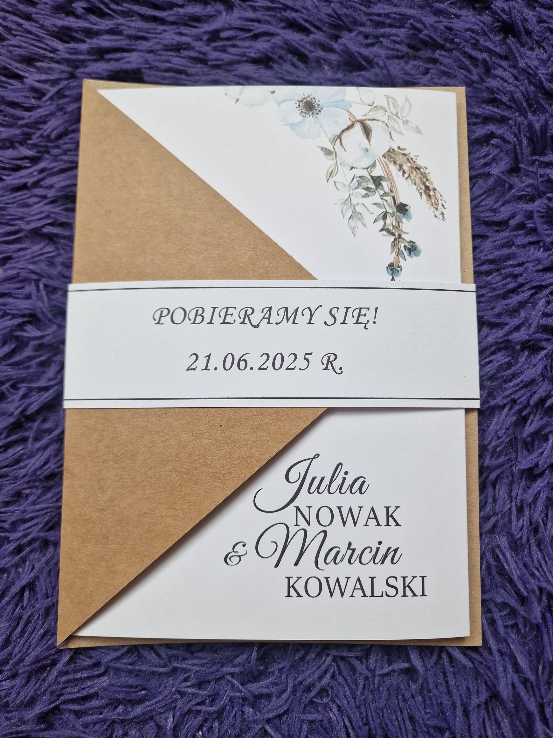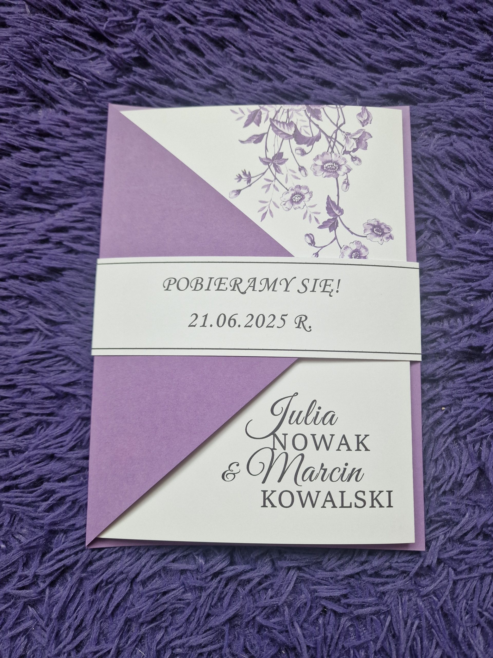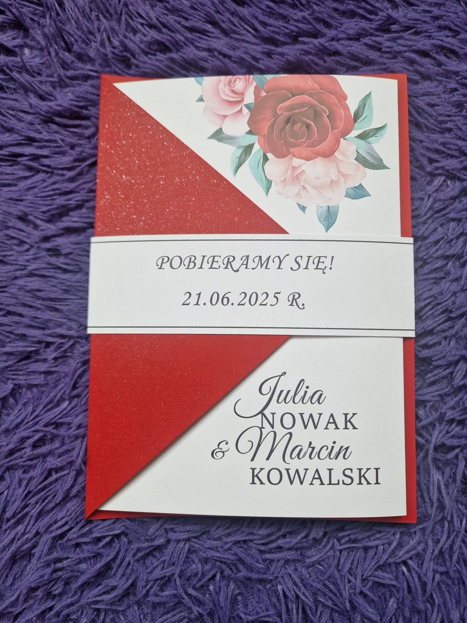 Zaproszenia są dostępne w wielu kolorach i wzorach.